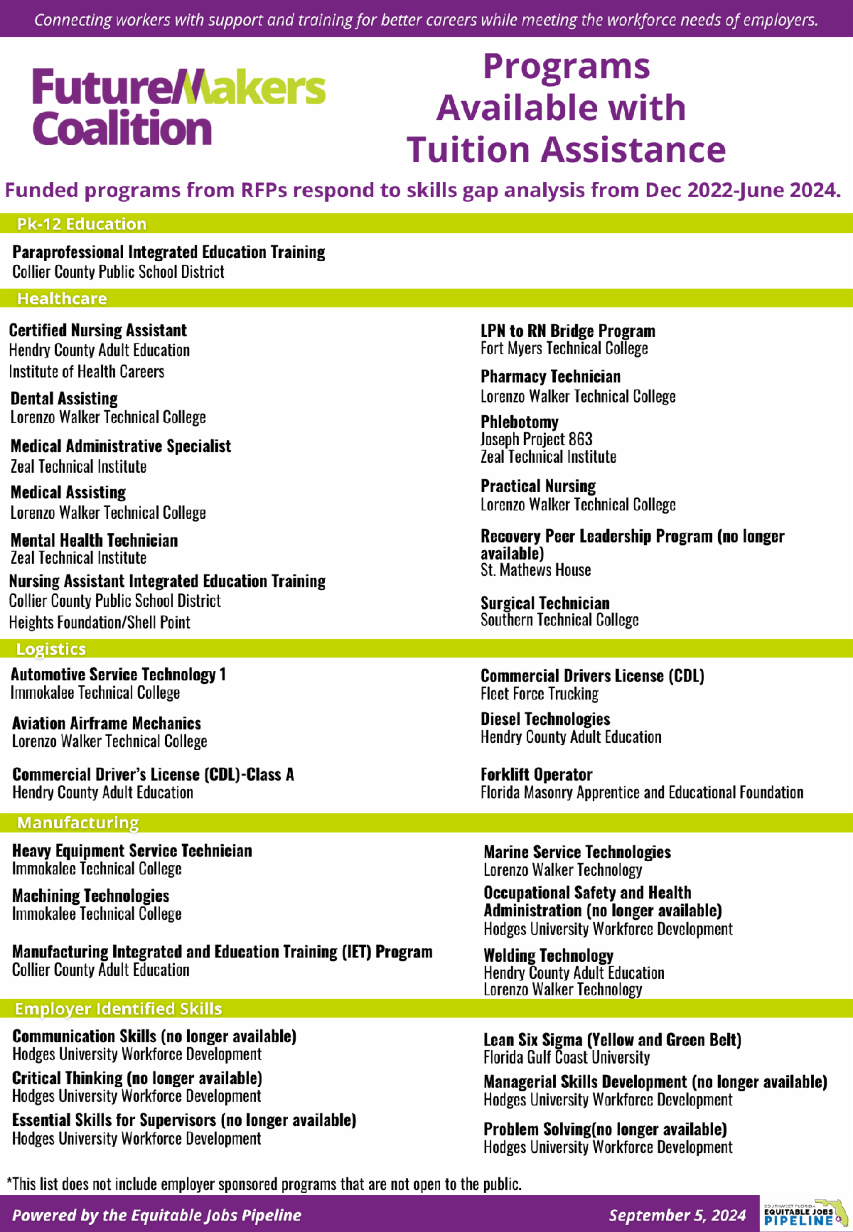 The SWFL Equitable Jobs Pipeline team continues to work daily to upskill the regional workforce and stimulate economic development, which will continue to build and expand a strong economic future for Florida.