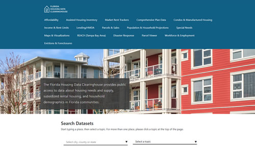 The Florida Housing Data Clearinghouse provides public access to data about housing needs and supply, subsidized rental housing, and household demographics in Florida communities.